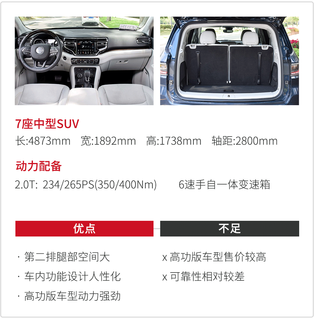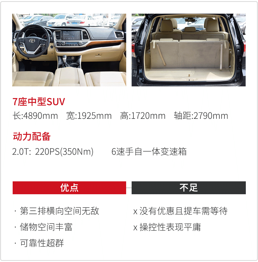 适合人群:7座中型SUV中最理想的选择,如果您预算充足,不介意等待提车,那就出手吧。