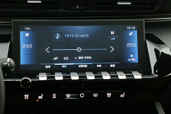 半悬浮式10英寸扁平化中控屏实现了众多功能的集成,涵盖了导航系统以及CarPlay & Carlife手机连接等等。中控屏下呈现钢琴键式排列的实体快捷键,在驾驶过程中能够实现精准的盲操作。