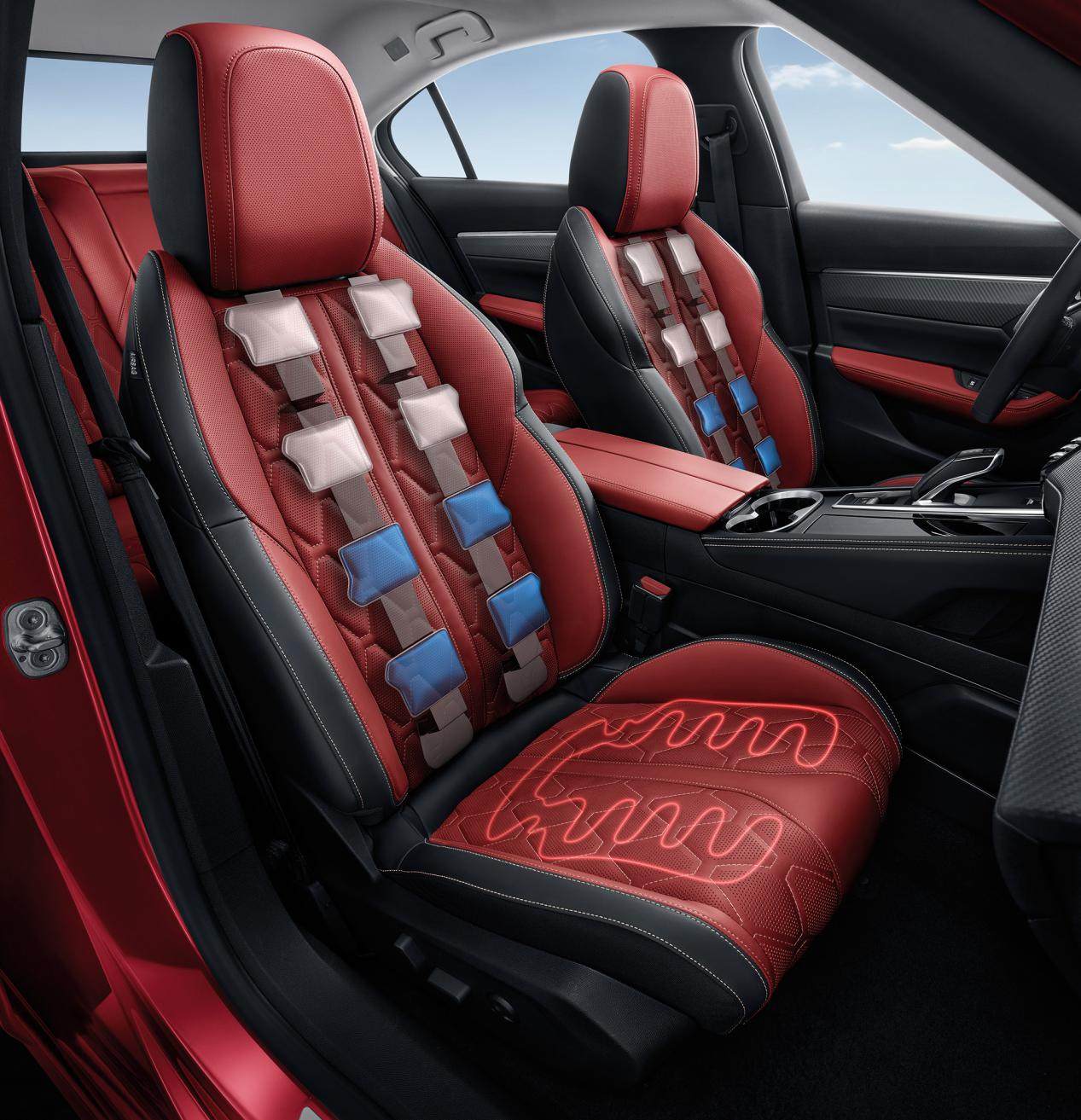 前排搭载了人机工学设计的NAPPA座椅,不仅提供座椅加热和通风功能,还有按摩功能,由8个气囊启动按摩,兼具5种按摩手法和三种力度设置,在长途行驶中为驾驶者带来更轻松的体验。