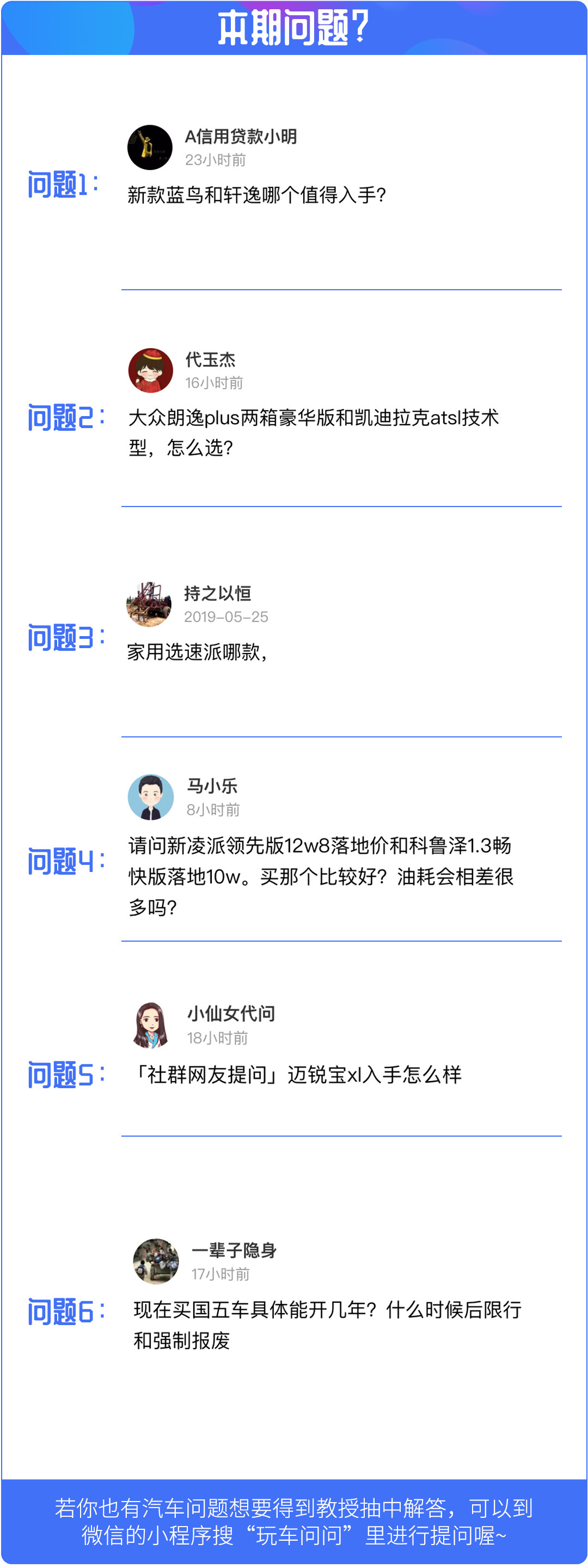 以上就是本期网友问答的全部内容,假如大家还有什么购车用车疑问的话,马上点击我们的“玩车问问”小程序进行提问,或者在评论区留言,会有教授和广大技师网友共同为大家解决问题!Ps:别忘了到文末给教授点个“在看”哦