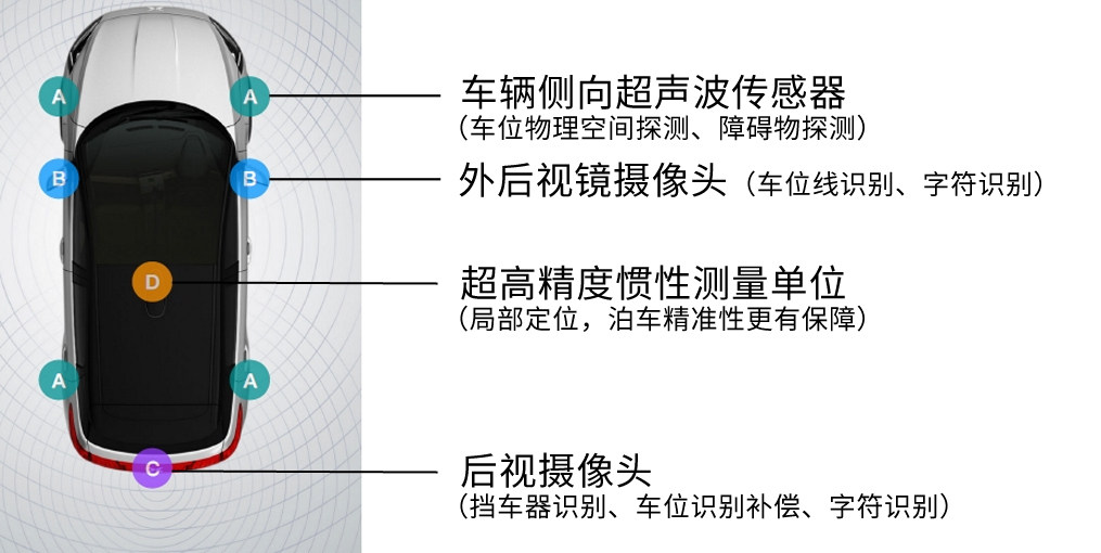 当然,虽然都具备自动泊车系统但感应的方式还是有差别的。比如小鹏G3靠的是全车20个智能感应设备,包括遍布车身四周的摄像头、侧向超声波传感器、高精度惯性测量单元等,监控以及计算方式更为全面。