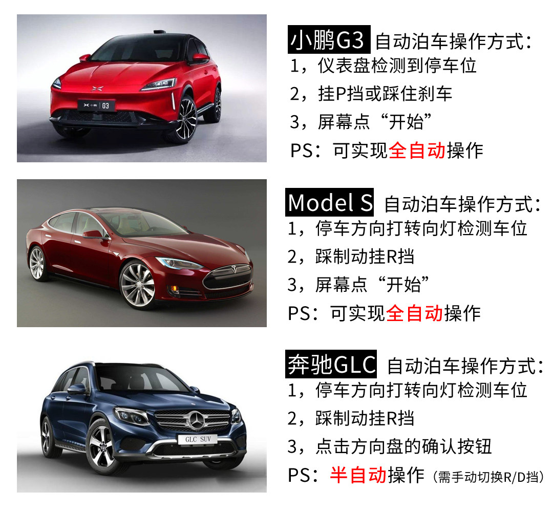三款车型都顺利完成,其别就在于识别以及泊车效率的效率,最终结果:小鹏G3 > Model S > 奔驰GLC。(详情看开篇视频)