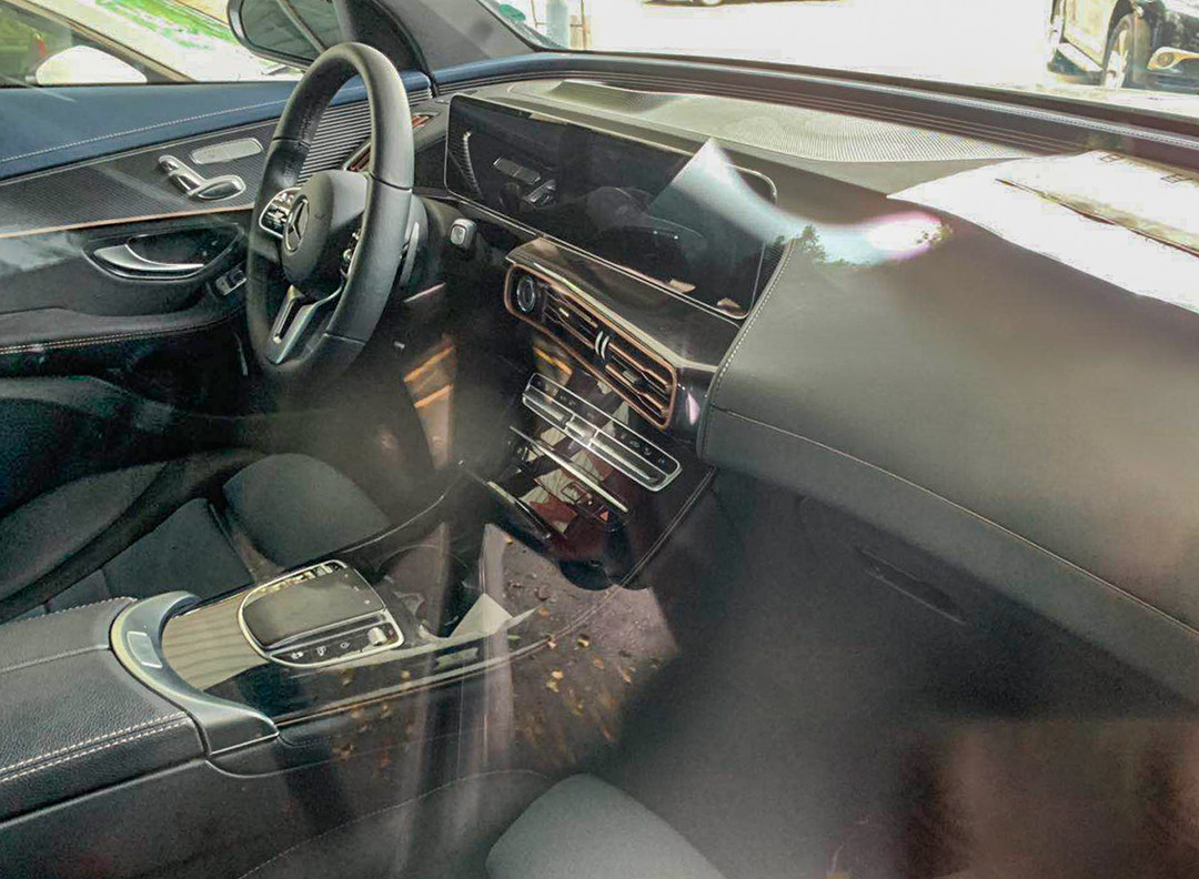 内饰部分采用了奔驰最新家族风格,全黑内饰风格搭配中央扶手上的高光烤漆饰板,质感油然而生。奔驰极具杀伤力的双10.25英寸显示屏如常出席,全新样式空调出风口配以棕色点缀,蓝紫色的一键启动按钮表明EQC新能源旗舰的显赫身份。