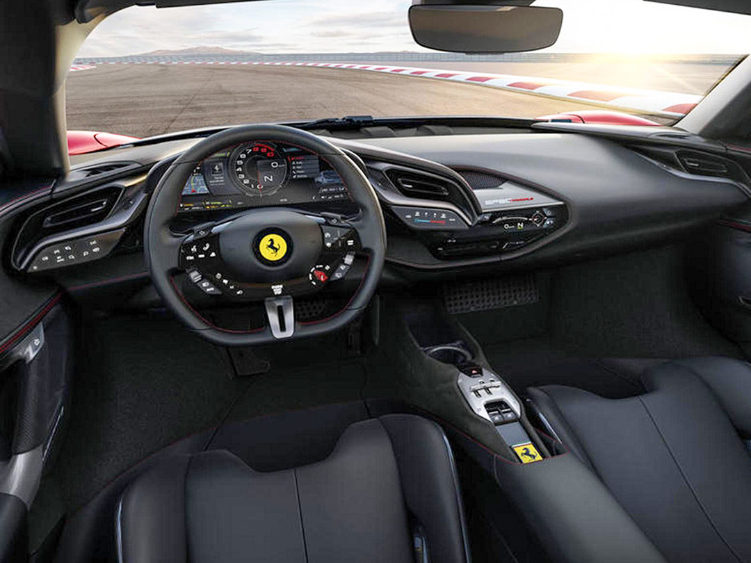 “眼观路面,手握方向盘”这个赛道衍生而来的驾驶理念首次被法拉利纳入新车核心设计考量当中,在新车的内饰风格以及人体工程学设计方面便能窥探一二。16英寸曲面电子液晶仪表盘颇具未来感,格栅式换挡机构设计灵感源于法拉利经典的手动换档拨片。需要注意的是,法拉利还为新车首次配备了由法拉利无实体钥匙技术所支持的启动开关。