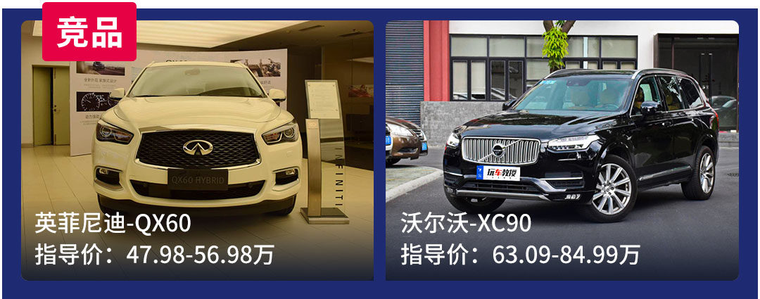 沃尔沃XC90,沃尔沃的旗舰车型,分别提供5座和7座版本车型,如果根据情况推出6座版本的话会更好。在终端的市场价格上,有可观的政策支持。整体而言,竞争力要比QX60强很多,无论是品牌力上,还是产品设计及功能性方面。但比起RX L,优势就没有那么明显。