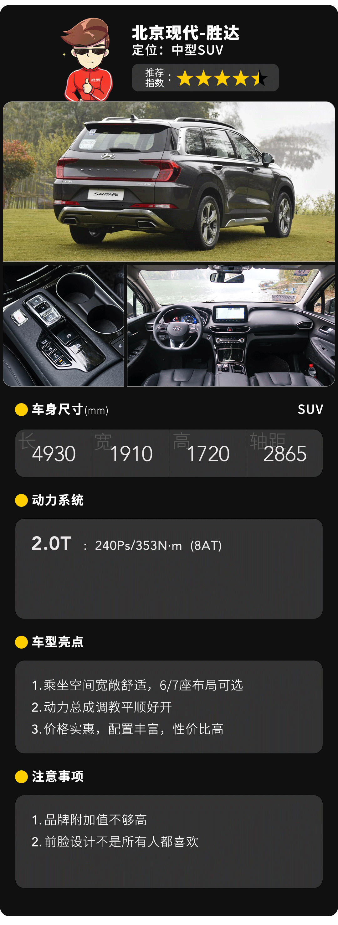 “胜达是汉兰达以外的7座中型/中大型SUV最优选”,是小编从文章开头到结尾都一直强调的一个观点。北京现代胜达纵使和级别标杆汉兰达依然存在着差距,但看在它这么努力地做好产品,并且价格如此实惠的份上,我还是劝大家多多考虑一下胜达吧!