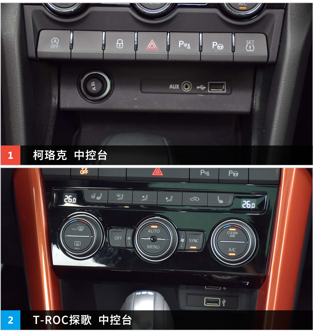 在内饰的配置方面,两款车看起来都各有各的优点。实体键的手感T-ROC探歌会更好,逻辑上T-ROC探歌也顺手一些。