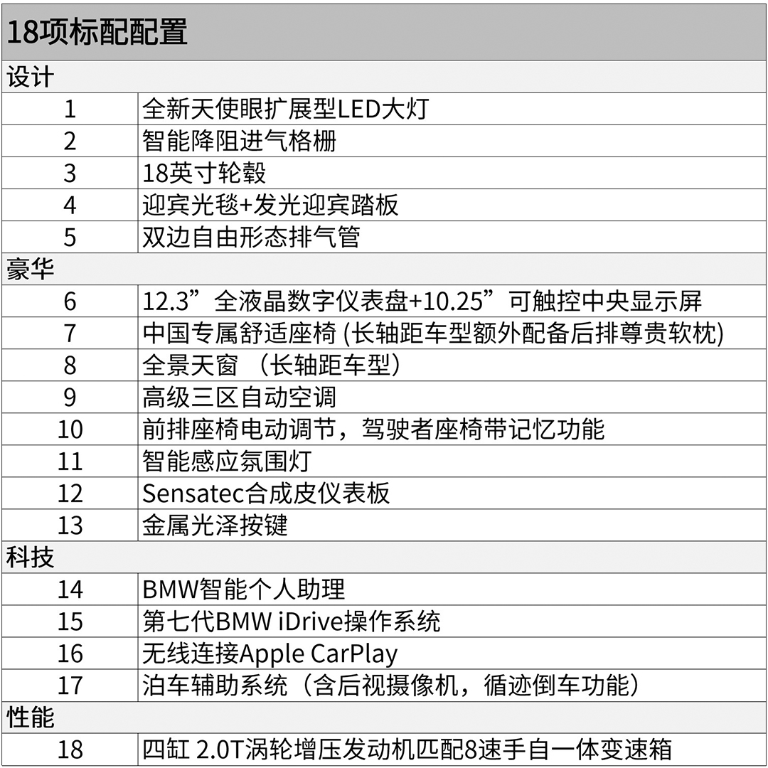 在这次预告价格的同时,官方还带来了其他重磅消息。如,全新3系将标配18项高价值配置令人十分欣喜。我们先来看看这18项标配都有些什么: