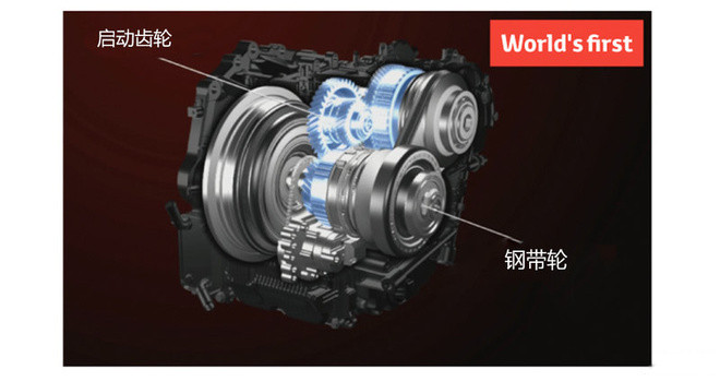 同时,丰田为了改善CVT变速箱的加速反应和传递效率,大胆创新在变速箱里加入一组齿轮,而这组齿轮被称为「Launch Gear」,Launch Gear齿轮会在车辆低速起步时进行工作,在CVT中模拟一般变速箱的一档,再加上齿轮组本身优异的传输效率更加强了车辆的加速表现。当转速达到提升到极限以后,此时便会以CVT的皮带传动系统接手,恰好因为Launch Gear齿轮组弥补了低档位高齿比的刚需,让丰田将CVT皮带组设计成高档位低齿比的工作模式,从而降低油耗成本的同时能提升汽车起步加速的反应,可以说是一举两得。