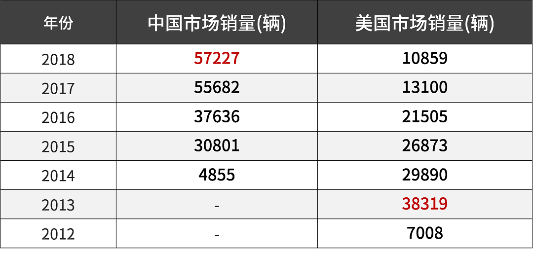 美国市场方面,上市后次年2013年获得了3.8万+销量,是相对喜人的成绩;