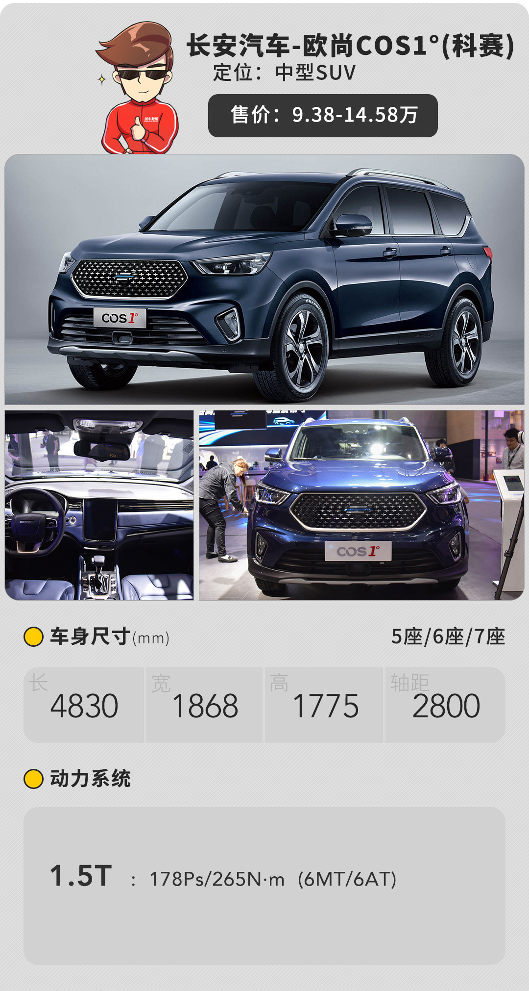 得益于长安国际化的设计团队,外观上科赛使用了很多原创的设计,整体感较强,漆面质感有豪华范,内饰上比较讨喜,首先环抱式中控台营造出温馨的氛围,用料上使用了较多的皮质和搪塑等软性材质,看起来和摸起来的感觉都不错,并且该车还有智能助手,亲测的确能提供便利。在9.38-14.58万这个价位,教授对科赛的内饰表现没有任何不满意。