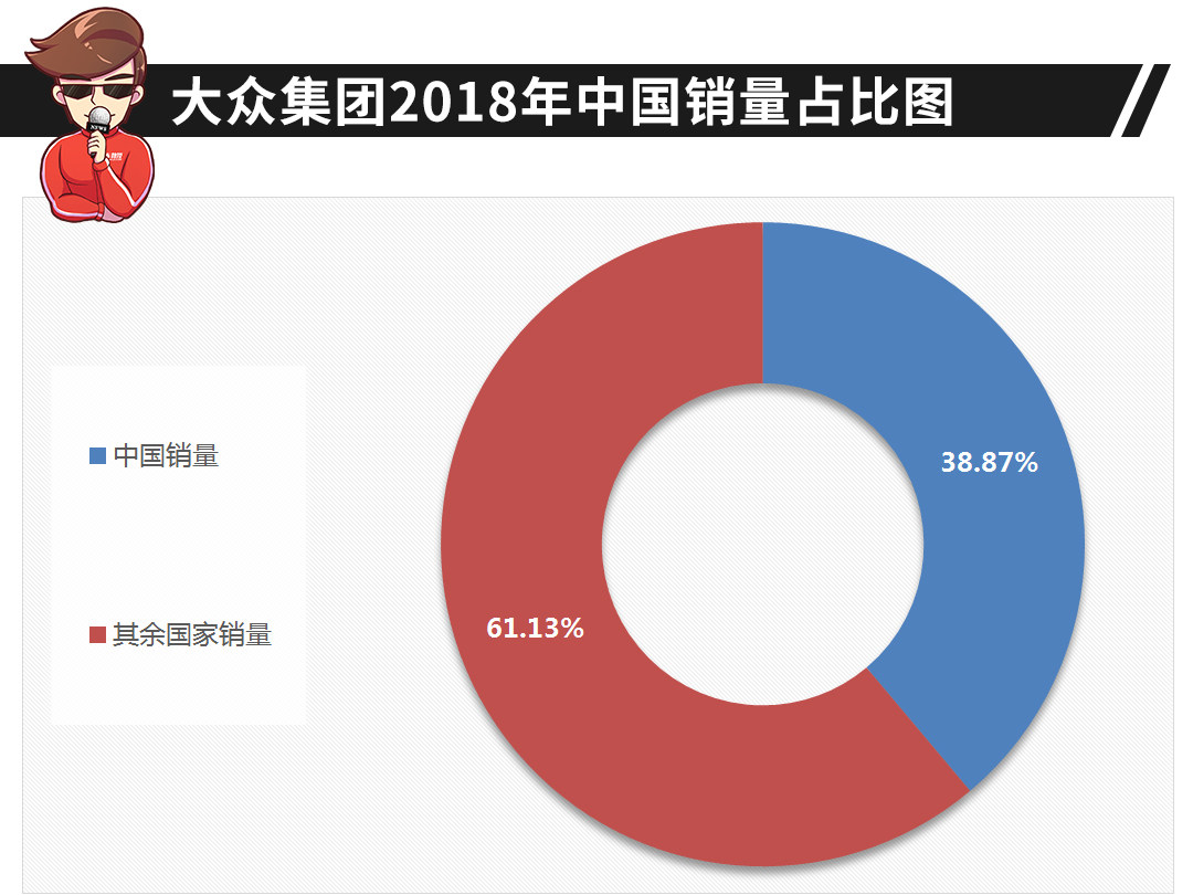 大众在中国卖得好是毋庸置疑了,但具体卖得有多好呢? 大众集团2018年全球销量达到了1083万辆,其中在中国就卖了421万辆,稳居单一国家销量榜第一。下面我们看下,大众旗下各品牌在中国的份额。
