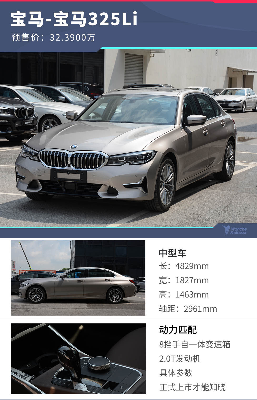 动力方面,新车搭载新款B系列2.0T发动机,有高低功率的版本之分,325车型(此前为320车型)动力参数为184马力/300牛·米,330车型动力参数为258马力/400牛·米,匹配的采埃弗8挡手自一体的变速箱。(这是目前官方公布的数据,具体的数据得上市之后才能确定)