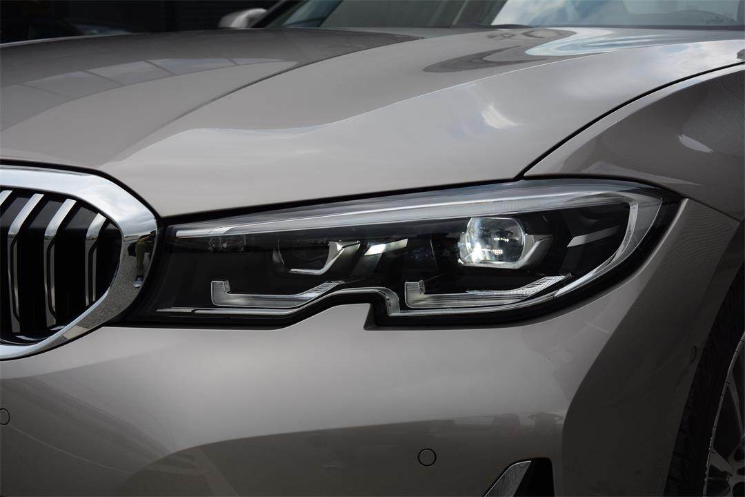 全新3系的“天使眼”灯组结构非常简洁,灯眉处为转向灯,下方有两道日间行车灯描摹轮廓,内部为两颗远/近光一体的灯光单元。