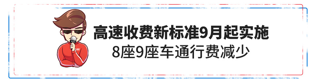 近日,交通运输部发布了修订后的交通运输行业标准《收费公路车辆通行费车型分类》,明确1类和2类客车分类界限值由核定载人数7人修订为9人,核载8人和9人车辆由原2类客车降为1类客车,新标准将于今年9月1日起实施。新标准实施后,9座以下全部按照一类车每公里0.4元收费,对于8座、9座车主来说是福音,同时也能一定程度刺激消费者购买8座、9座车。