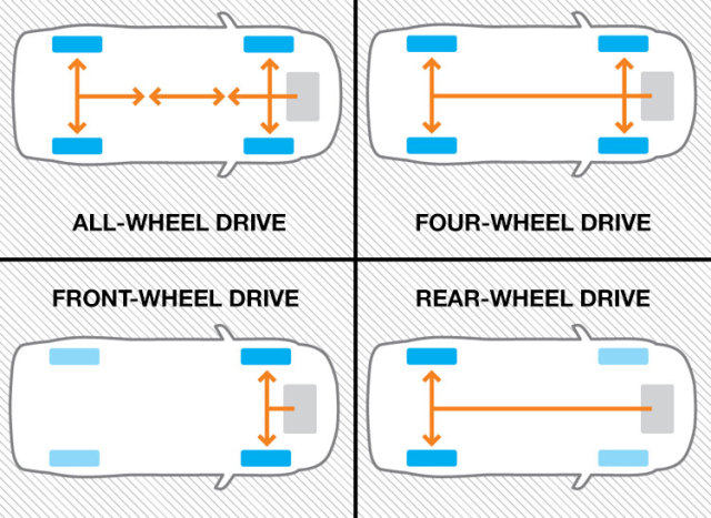 上左、上右、下左、下右分别为全轮驱动(AWD)、四轮驱动(4WD)、