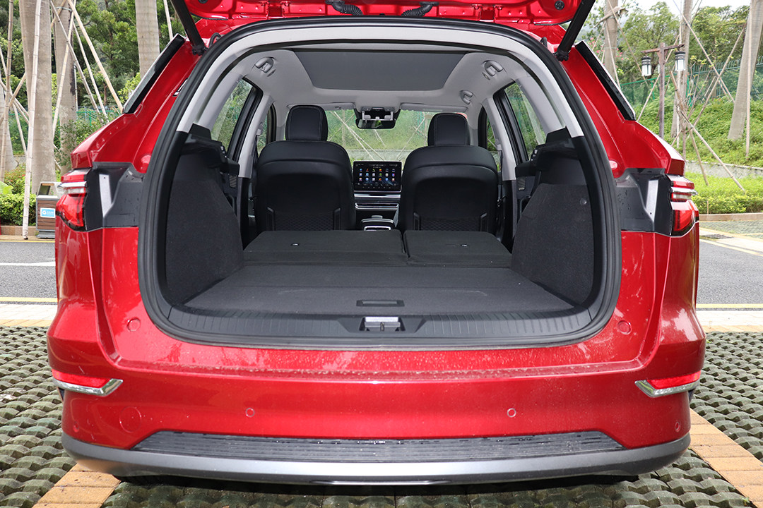 细数了下,比亚迪宋Pro DM全车储物空间多达22处,更难能可贵的是,储物空间均设置在乘客的一臂范围内,开口大、纵深足,取放物品方便,不显鸡肋。需要盛赞的是520L大容积后备厢,后排座椅放倒后还能轻松扩容至夸张的1340L,与地板形成平整表面,干点啥都方便。