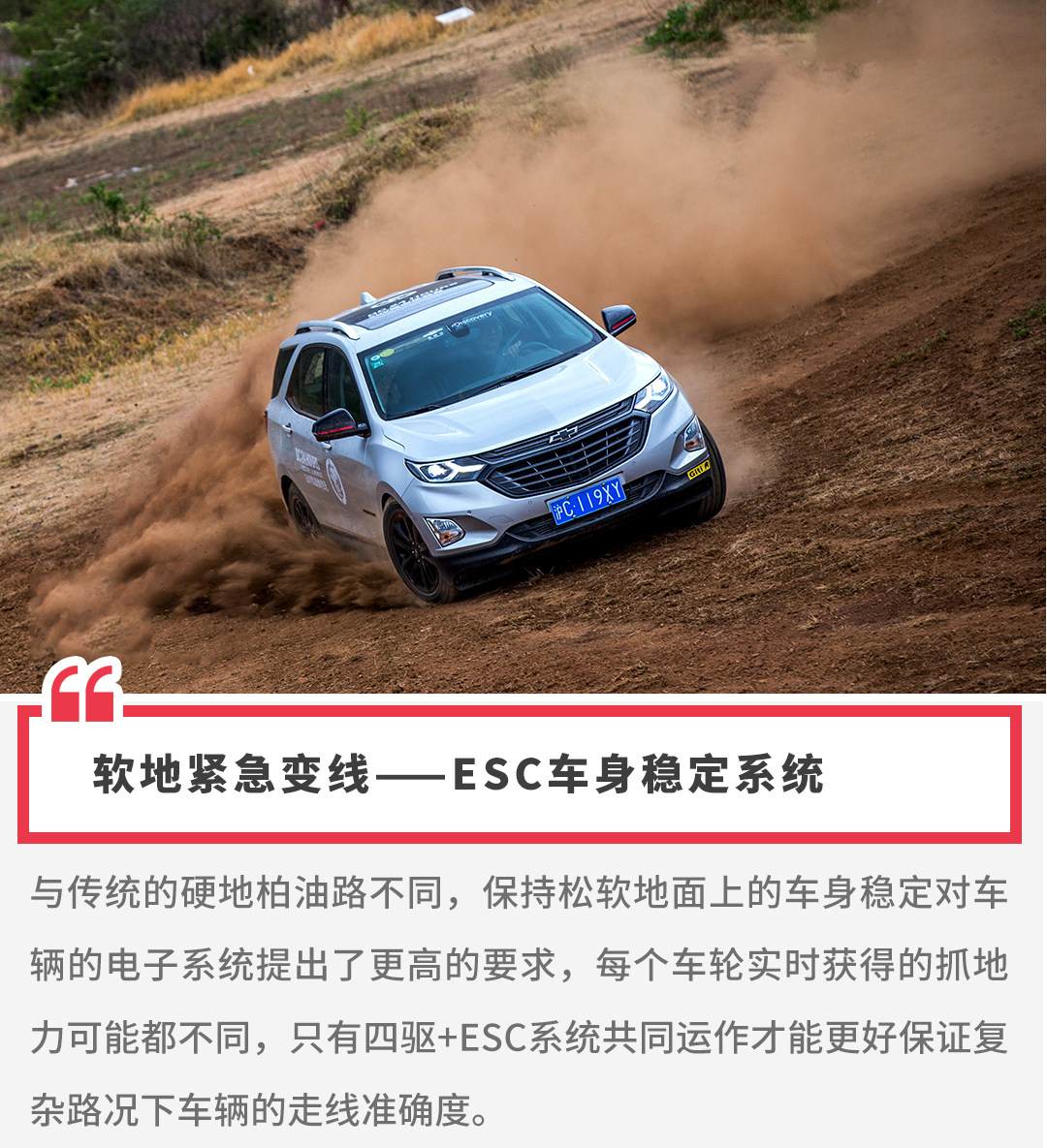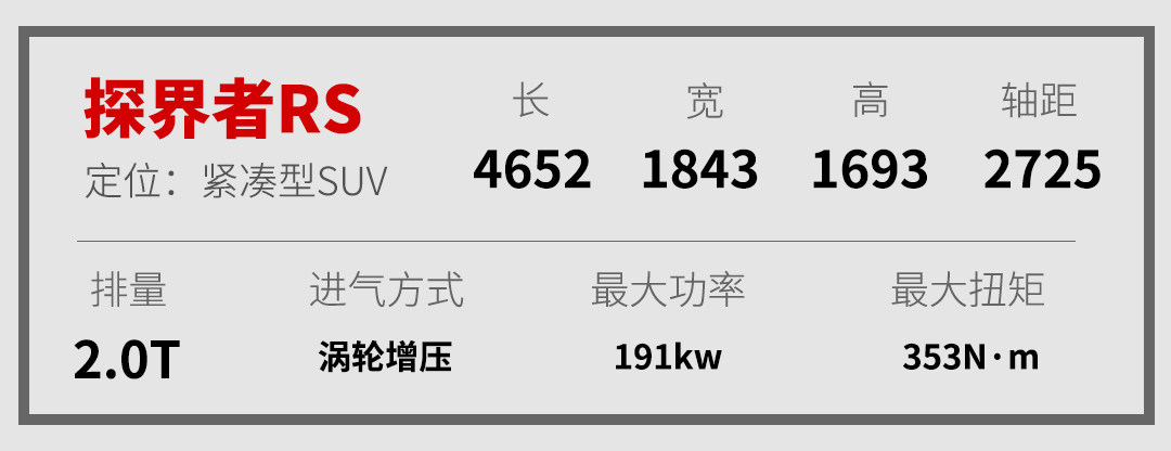 本次试驾的车型是探界者RS,作为中期改款的车型,在外观上更强调运动越野的的元素。动力依旧为2.0T+9AT,最大功率191kW,峰值扭矩353N·m,采用分时四驱系统,作为城市SUV中较常见的四驱系统,教授一直认为这套系统更强调的是湿滑雨雪天气下的行驶稳定性,脱困能力则表现的一般,而探界者这次的场地表现则颠覆了我的印象。