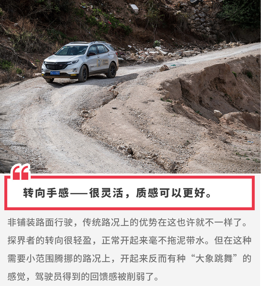 简单的越野场地体验只是把探界者的实力呈现了出来,教授并不想以一款越野SUV的标准去衡量它的表现好与不好,它就是一款城市SUV,在一些偶发的极端情况下,它能够获得不错的表现,相信这就是消费者选择一款城市四驱SUV的理由。至于接下来的非铺装路面体验,教授觉得都不用称之为“越野”,这样的路况对探界者没有任何压力。