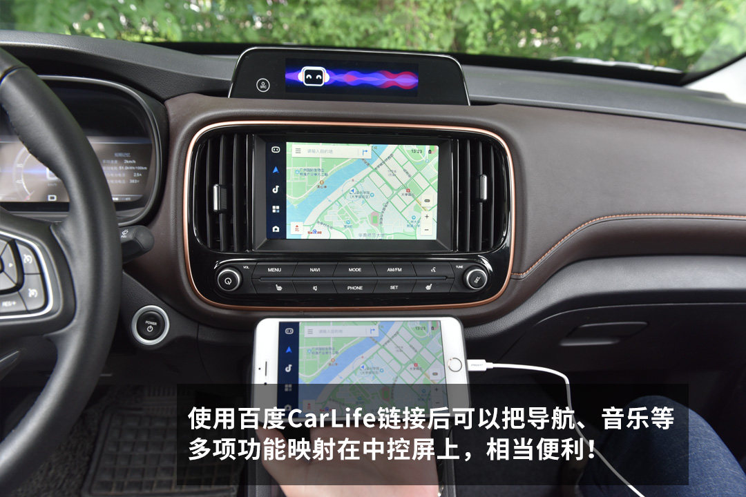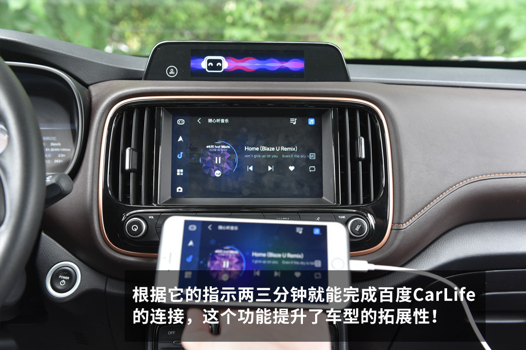 我迫不及待地测试了百度CarLife功能,首先摇在手机上下载CarLife,然后可依照指数采用USB线连接或蓝牙连接,操作过程并不繁琐。