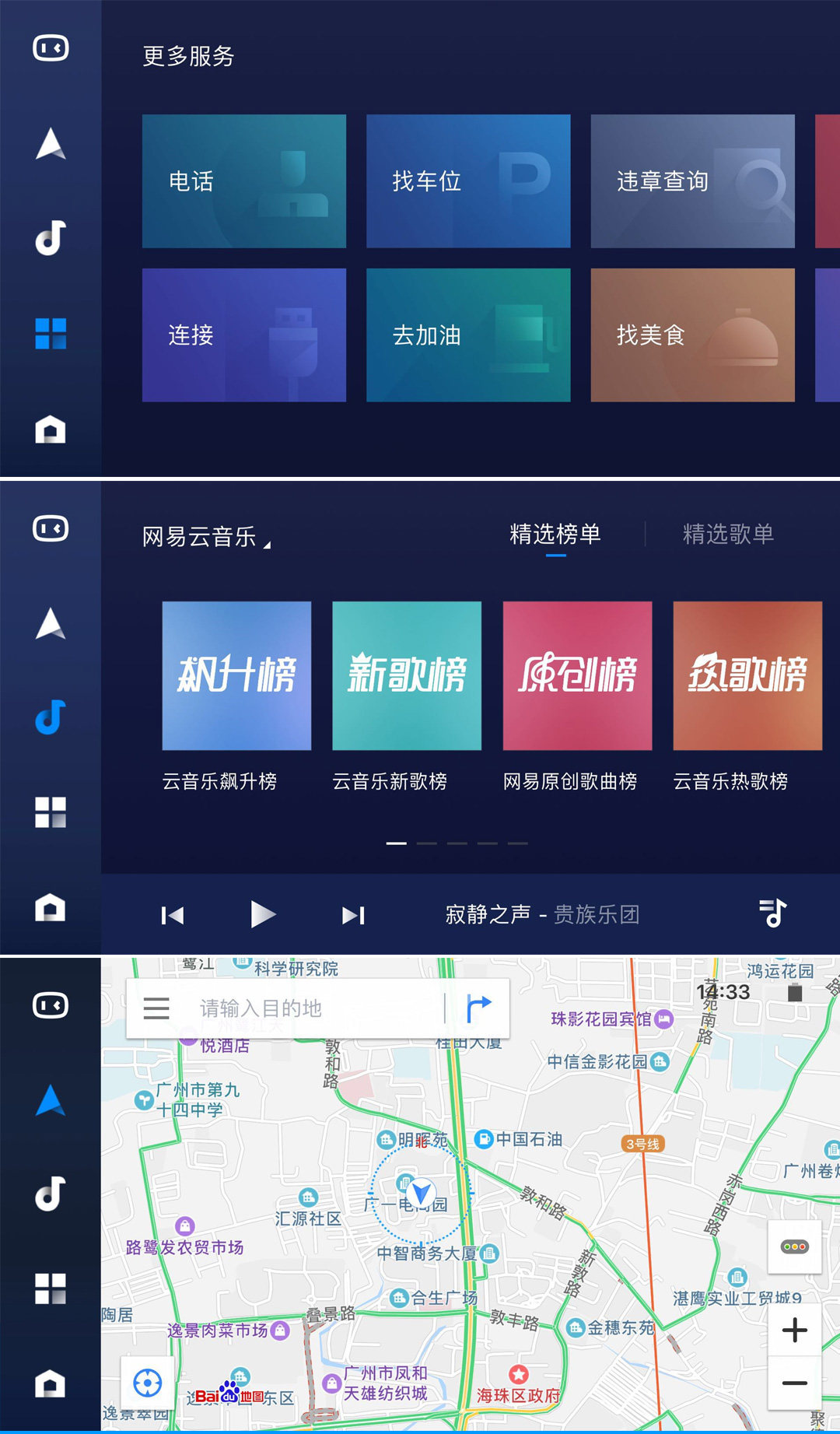 百度CarLife的基本功能界面: