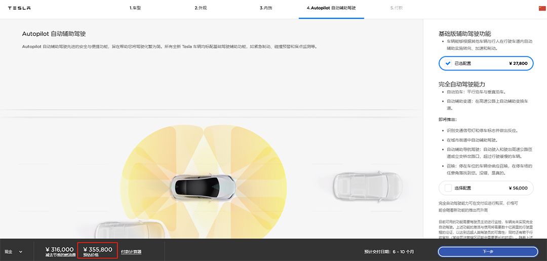 而选装完FSD需要叠加5.6万元,车价为38.4万元;这并不包括除了黑色车漆、18寸轮毂和黑色内饰以外,其他车漆等选装的价格。