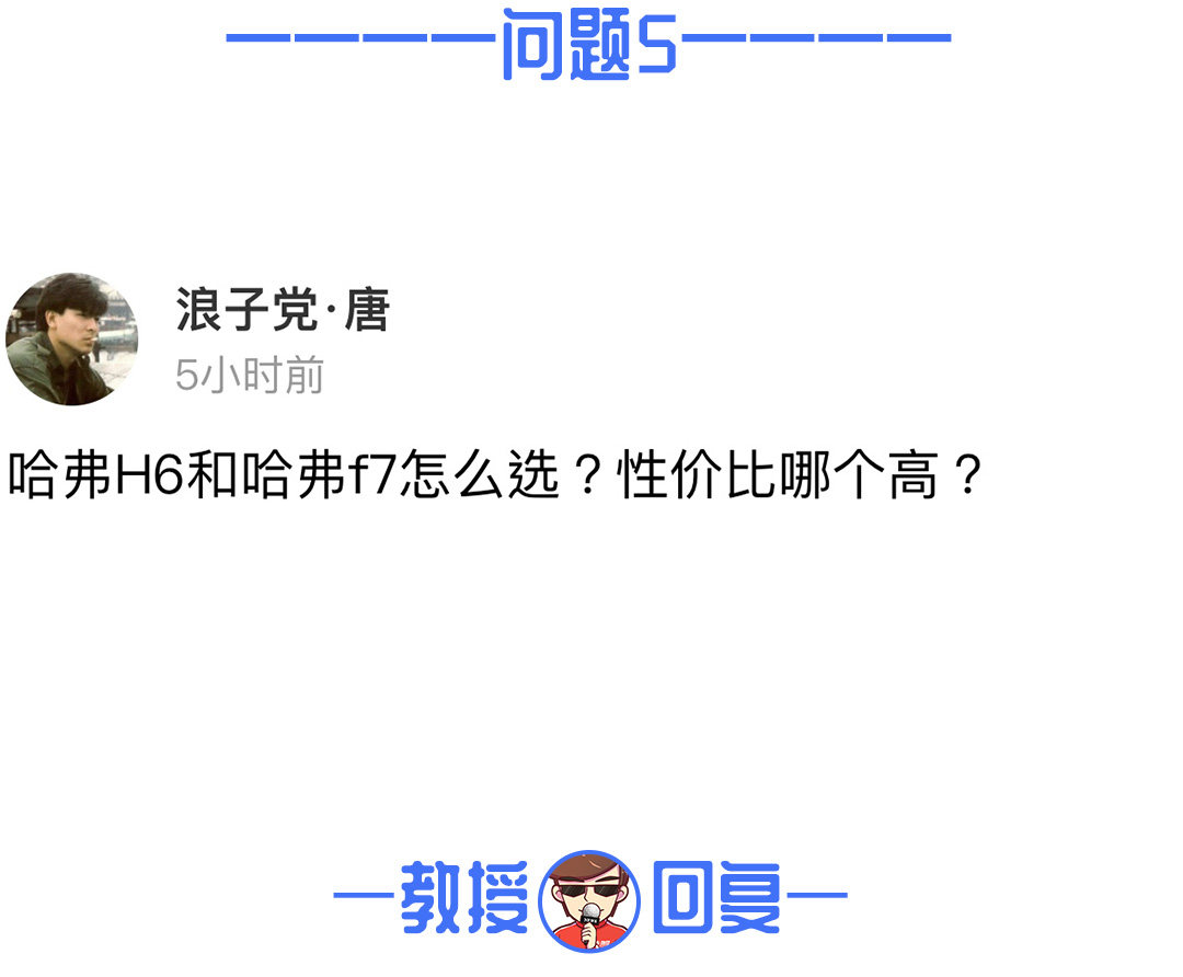 如果是一般家用的话教授更推荐选择哈弗H6,毕竟是连续6年的销量冠军得到国人的认可,市场上保有量较大,车内空间配置也比较实用,后期保养便宜省心。其次年轻人可考虑入手主打年轻运动的哈弗F7,科技感十足。