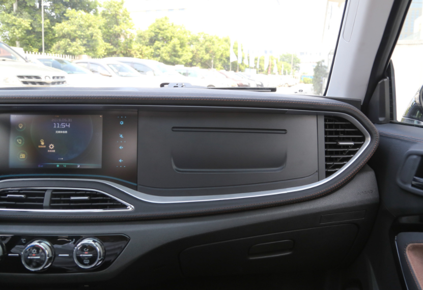 高配车型在中控台处有三个液晶屏,而中低配只有仪表跟中控处有屏幕,副驾直接给你安了一块黑色塑料板,简单够粗暴。屏幕尺寸都为8英寸的规格,虽然大黑边超级无敌显眼,但黑边两侧有背光的触摸按键,嫌弃的眼神多了一些可直视的地方。