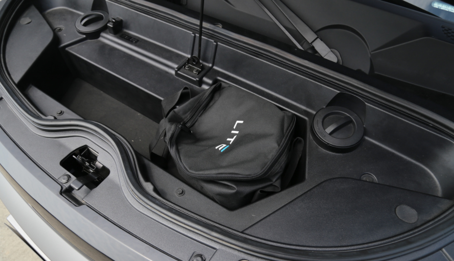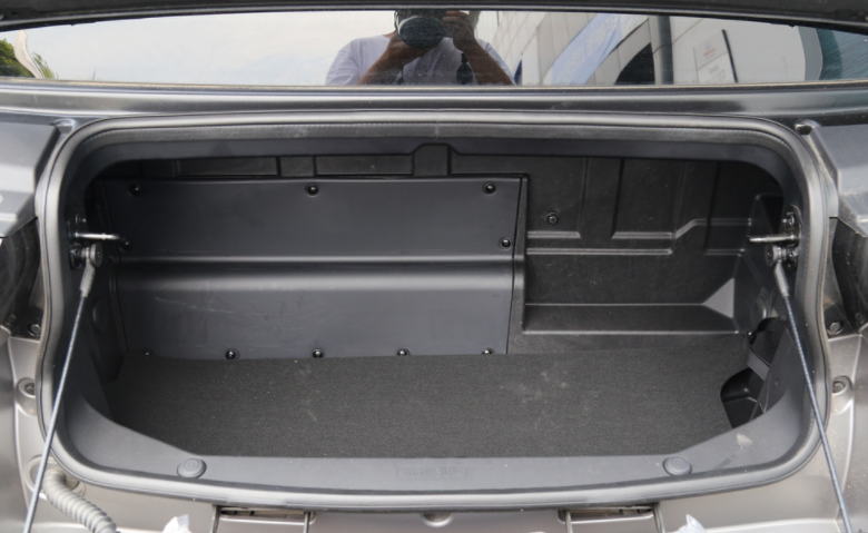有意思的是车尾多出来的那一点点是个尾箱盖,打开后,后备箱两段式开启,只不过这个后备箱放个背包可以,想扔个20寸的登机箱你都得悠着点,如果再算上车头前备箱最大5kg的容积,你买菜还行,超市狂购估计就得把购物袋挂车外了。