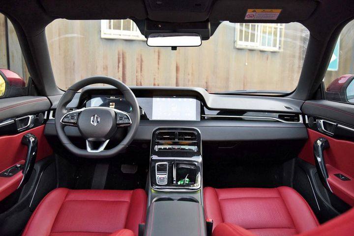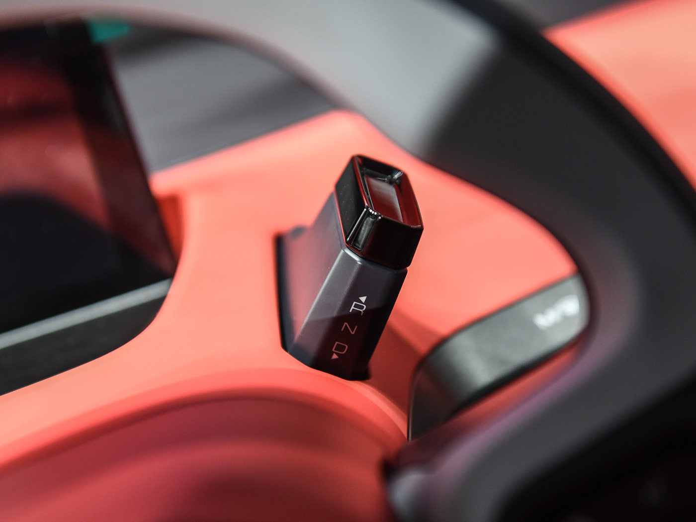 内饰走的概念风,整个中控台就一个仪表液晶屏幕,里头几乎集成了所有可显示的信息。在旁边还给你留了几个像空调等调节的虚拟物理按键,便于操作;换挡机构则在方向盘的台柱上。
