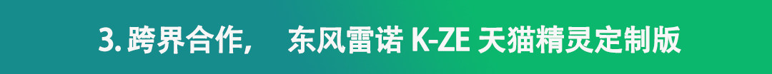 在前不久的2019 CES Asia亚洲消费类电子产品展览会上,东风雷诺联合互联网巨头阿里巴巴推出雷诺K-ZE天猫精灵定制版车型。作为东风雷诺首款投放国内的纯电动产品,为其量身订造限量版足以看见雷诺对它的重视程度,同时这也是天猫首度推出的定制版电动车,将于下半年推向市场。