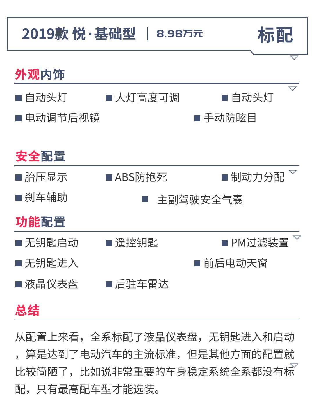 作为一款纯电的车子,配置非常的重要,咱们一起来看看,比亚迪S2全系的标配情况。