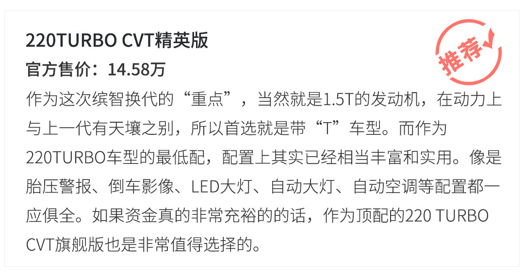 教授很期待缤智未来的表现,虽然说1.5T车型的起售价是有点偏高,但胜在有1.5L车型做输出,并且最低配车型是能买到的。中期改款的缤智会成功吗?当然会,因为它本来就是一款成功的车型。