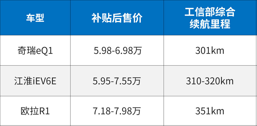可以发现,这三款车型售价并不高,但工信部综合续航里程都达到300km以上,而这三款车型也是这一级别车型里销量表现突出的,性价比表现不错!