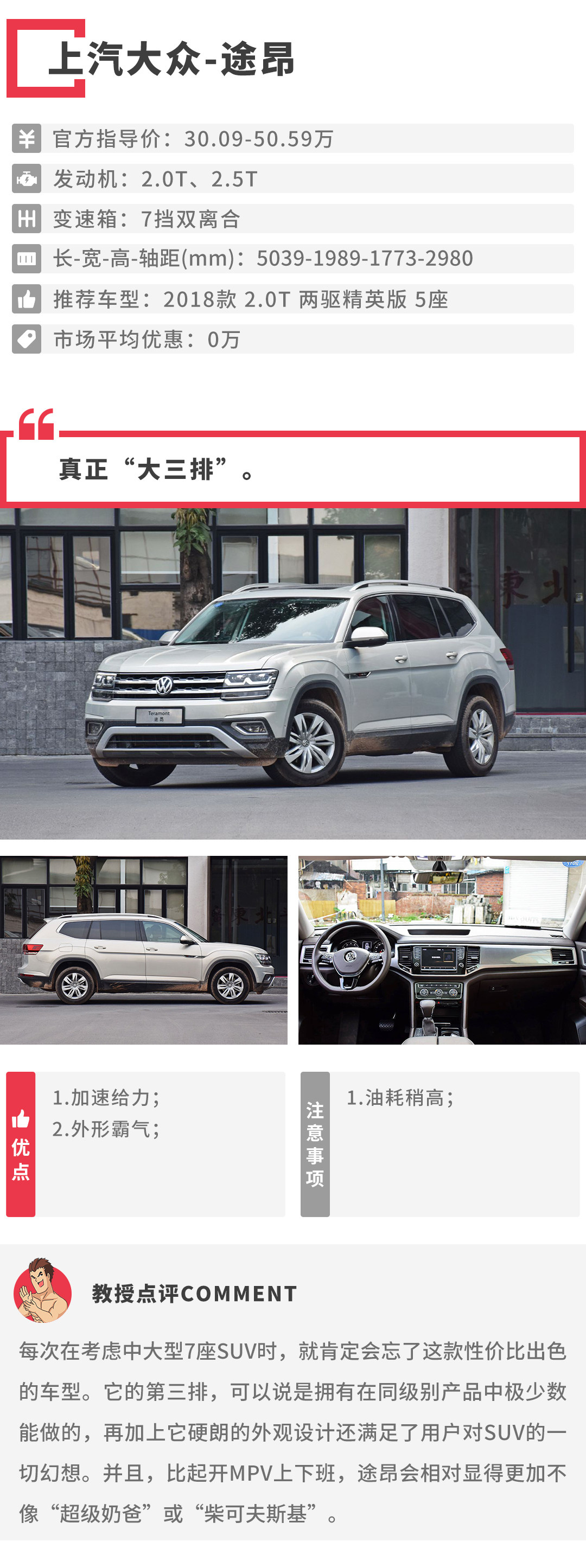 最后需要补充的是,如果你的需求里,第三排空间需要经常使用,还是建议首选MPV,尤其是二胎家庭,其实更适用;而如果阁下的第三排只是偶尔用来应急,那么SUV会显得更加适合。
