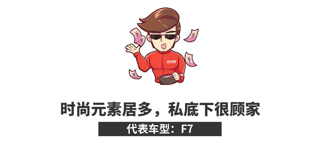 私底下很顾家,配备智能车技系统,多多少少有些网红气质。如果还想再时尚运动化些,那么还有F7x轿跑版本车型选择。在某种程度上,你可以将F7当作成是一款城里来的H6,外观内饰进一步时尚化,但内心它还是拥有一颗农村淳朴的心。但在本质上,它依然是一款非常顾家的SUV车型,只是看上去时尚运动化罢了,这从悬架和变速箱的设定,就能够很容易的区分出来,整体驾驶感受偏舒适性会多些。动力依然是熟悉的1.5T和2.0T自主研发发动机,在匹配长城的湿式双离合变速箱,日常使用再合适不过了。
