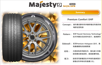 为迎合国内日益增长的高端车型的需求,并满足更注重驾乘感受的高端车主的追求,锦湖轮胎将旗下定位高端的Majesty(迈杰斯特)品牌引入中国市场。据分析调查,锦湖轮胎在韩国销量稳拔头筹,以Majesty为首的王牌产品深得消费者青睐,自上市初期开始就在市场上获得了“适用于高级轿车的轮胎产品”的口碑。