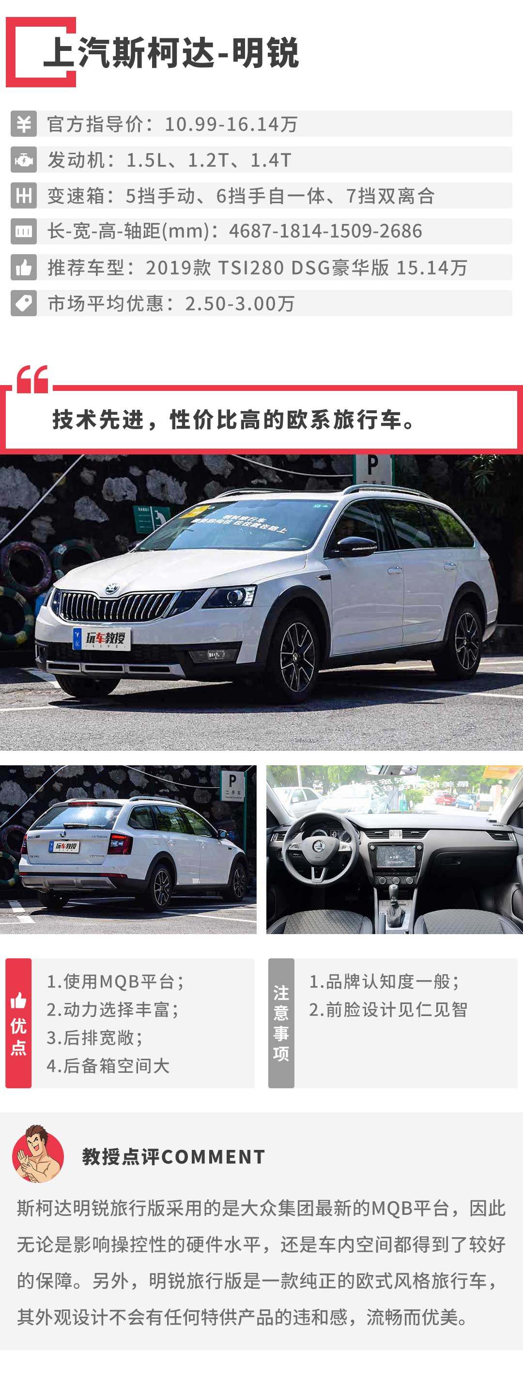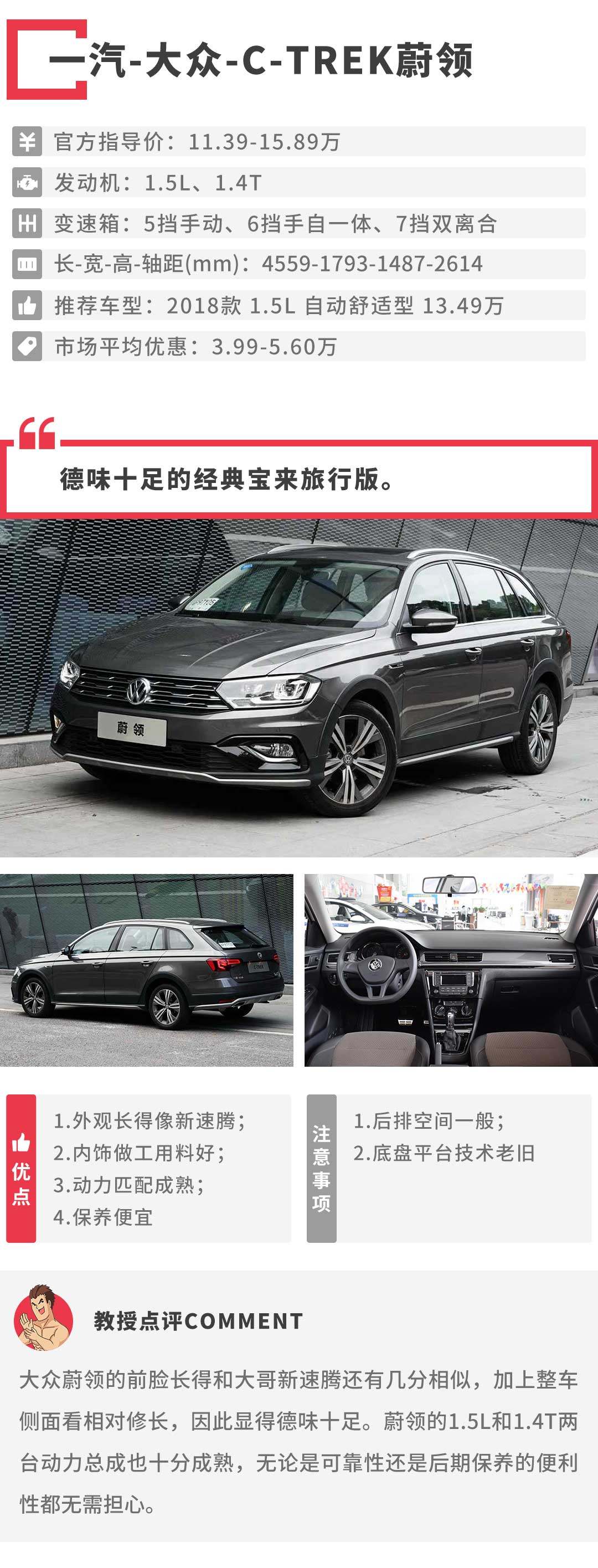 三厢轿车和SUV无疑是国内汽车市场的两位绝对统治者,但是对于一部分人来说,三厢车的后备箱空间还是太小,而SUV重心高,公路操控性又不能满足需求。因此这时候买一台旅行车就再合适不过了。那么市面上又有哪些价格亲民的旅行车适合广大普通家庭用户呢?教授今天就带大家一起看看。