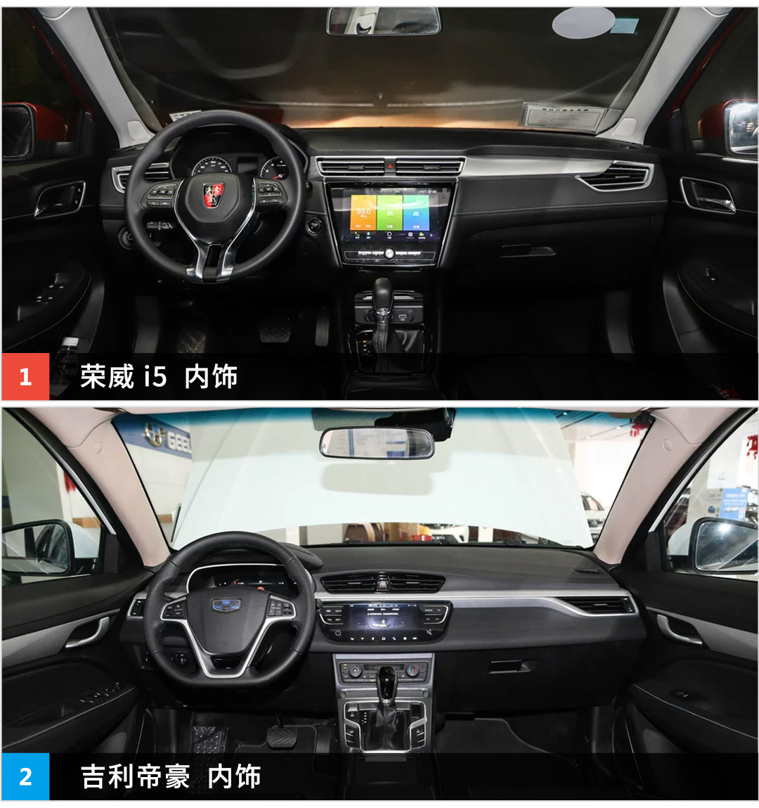 我们选取两款车型中消费者关注度最高的版本进行对比,分别是荣威i5 2019款1.5L 4G互联自动朗豪版,和吉利帝豪2018款1.5L CVT向上互联版,两款车型的指导价都在9.2万元左右,优惠后统一在7.5万元上下。