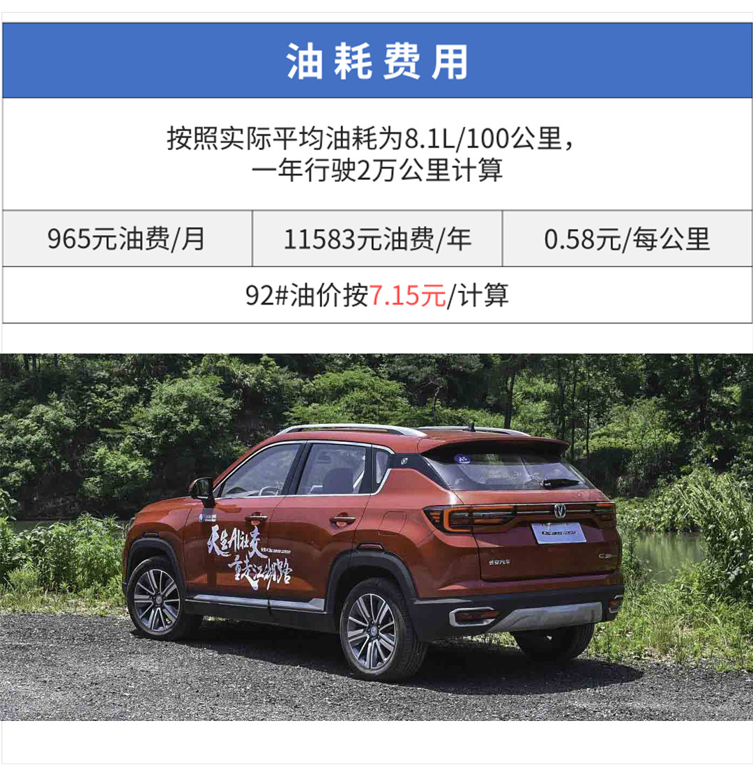 目前CS35 PLUS暂时缺少保养和车险数据,我们仅看该车油耗,平均油耗8.1升在国产小型SUV市场中算是中规中矩,1.6L+爱信6AT对油耗的影响并不大,但胜在口碑出众,在上市后CS35 PLUS的销量不断攀升少不了成熟可靠的动力总成做出的贡献。