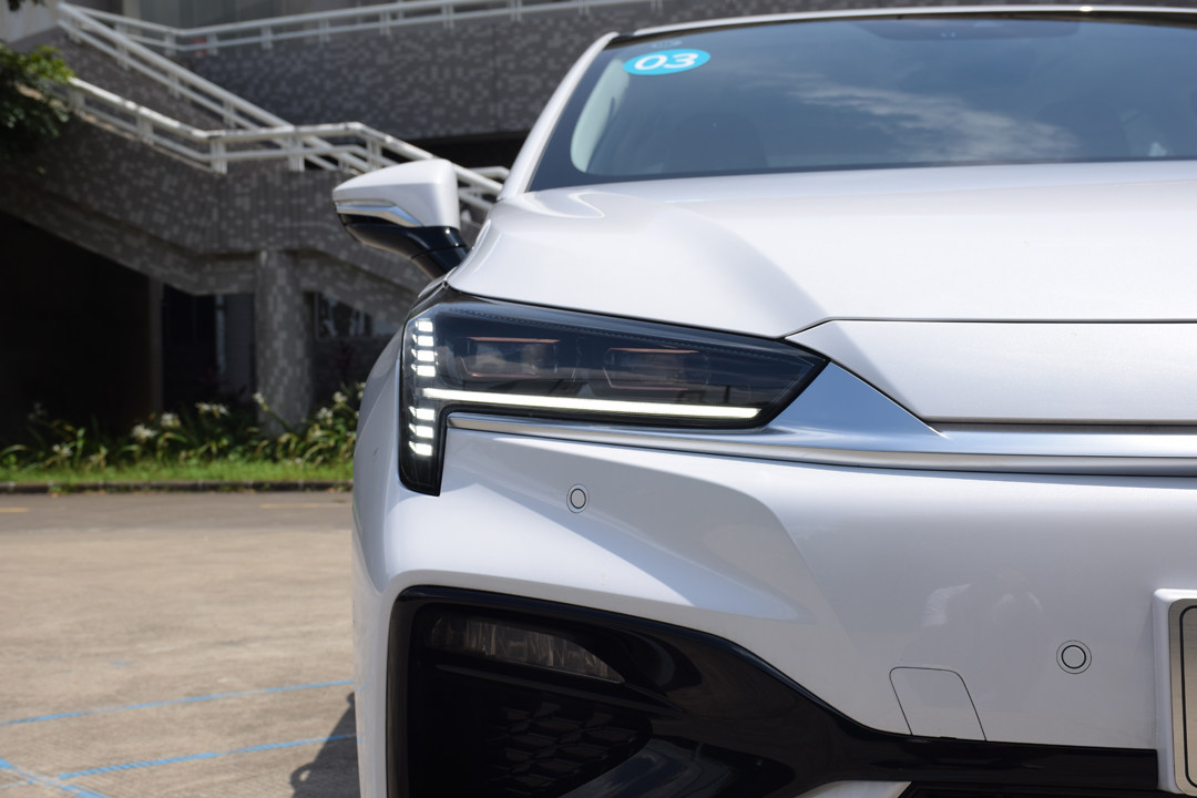 T字型的大灯是Aion S车头的点睛之笔,除了日间行车灯在行车的时候相当具有标识性以外,分体式带透镜的远近光一体LED大灯为车辆夜间提供足够的行车安全。