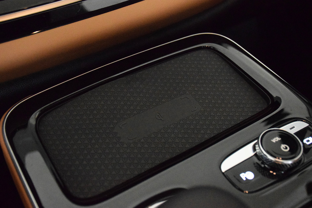 地台位置有一块特意预留的手机无线充电的区域,还带有防滑垫。在无线充电区域下方有一个空间硕大的储物格,并且有两个USB接口和一个12V电源接口,可以满足前排所有的用电需求,不过,根据教授实际体验下来,无论是有没有带手机套,车辆都无法为Iphone XS提供充电。