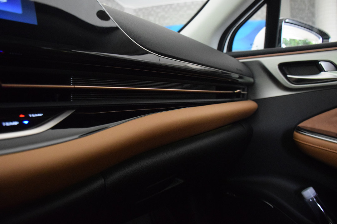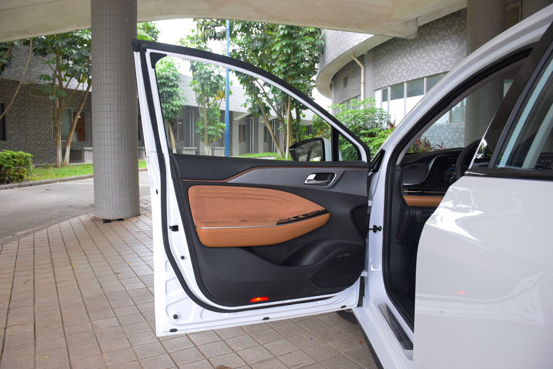整体车厢内饰使用大量的皮革以及软质材料,一个简单的门板上就有真皮、Alcantara、木纹镀铬装饰灯几种材料,在用料上Aion S做到了同级别的顶尖水平。