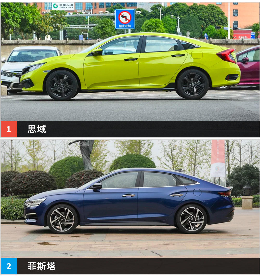 两款车在身形上也是互不相让,轴距完全相同,但是思域的空间利用率更高,后排乘坐空间也要更舒适。菲斯塔则胜在视觉感受,红色饰条更吸引眼球,造型细节也更精致。
