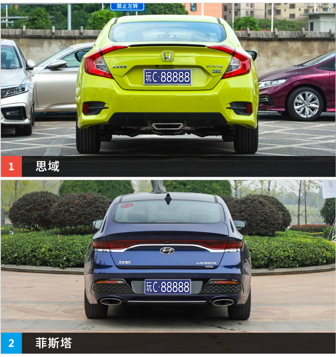 菲斯塔采用了时下流行的贯穿式尾灯,下方还用了镀铬饰条提升精致感,双边双出的排气管口径很大,性能范不错。思域则换装了唬人的中置排气,下裙加入了扩散器,运动感更加强烈。