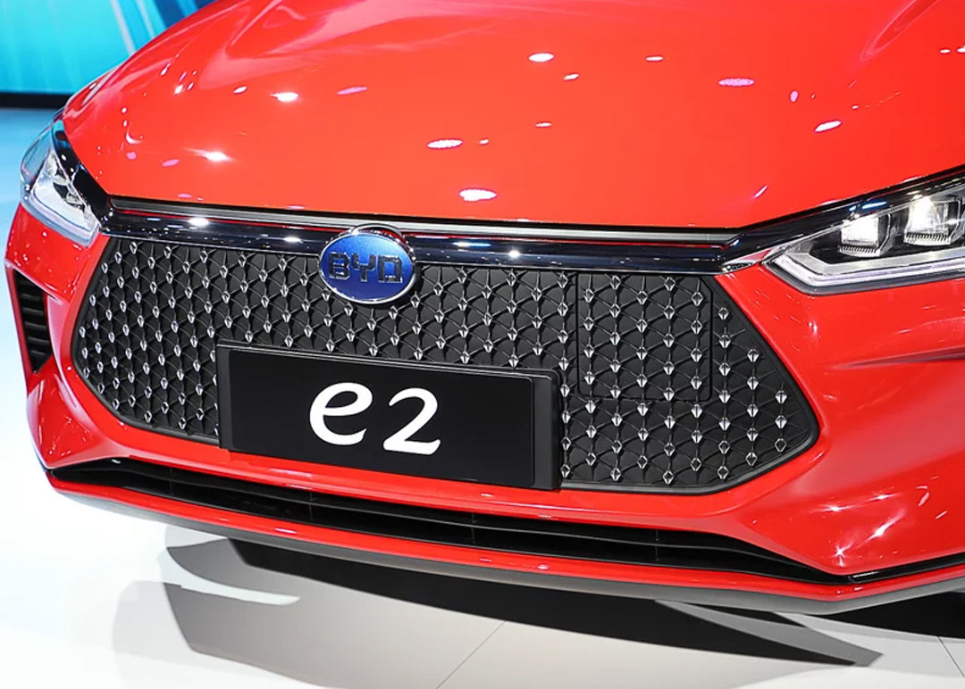 比亚迪e2虽然隶属于e网系列,但它的整体设计依然融入了不少“Dragon Face”设计元素在里面。新车前脸采用了六边形大尺寸的前格栅设计,并且内部加以点阵式镀铬装饰,格栅内部自然是封闭的。