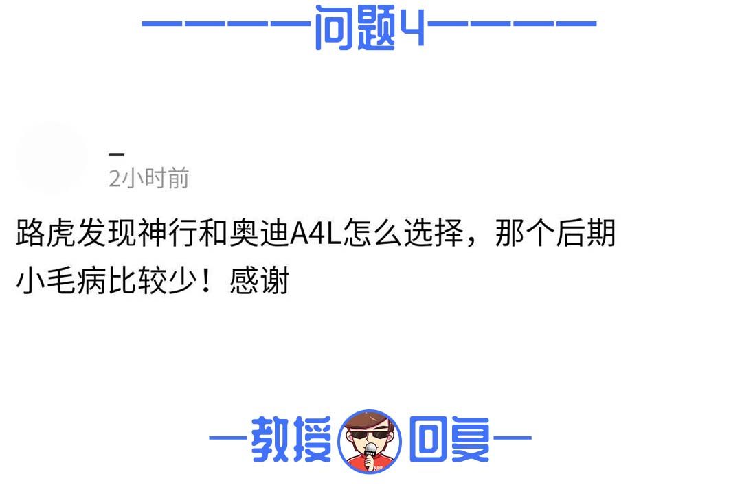 教授建议选择奥迪A4L,虽然说这两款车并不是同一类型的,但是从故障率来看,还是很容易选择的。