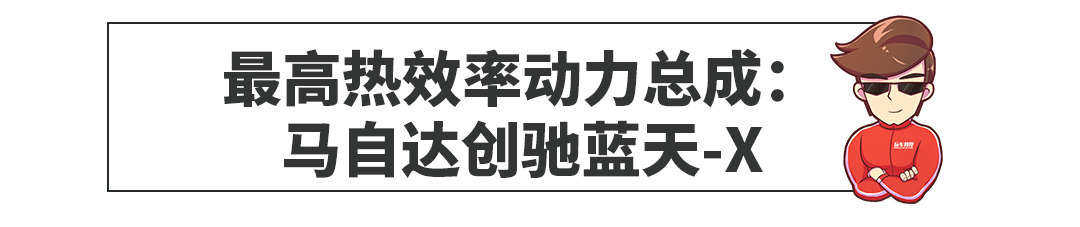 虽然还没有确凿的数据支持,但原定目标热效率50%的马自达创驰蓝天-X相信会是热效率最高的汽油发动机。为了实现这个夸张的数值,马自达在这2.0L发动机中采用了均质压燃技术,让这汽油发动机能模拟高热效的柴油发动机运行。另外它还加入了机械增压作为辅助,能够在点燃-压燃状态下切换。作为进一步的辅助,这套动力总成还加入了微混,最大功率189马力,峰值扭矩230牛米。