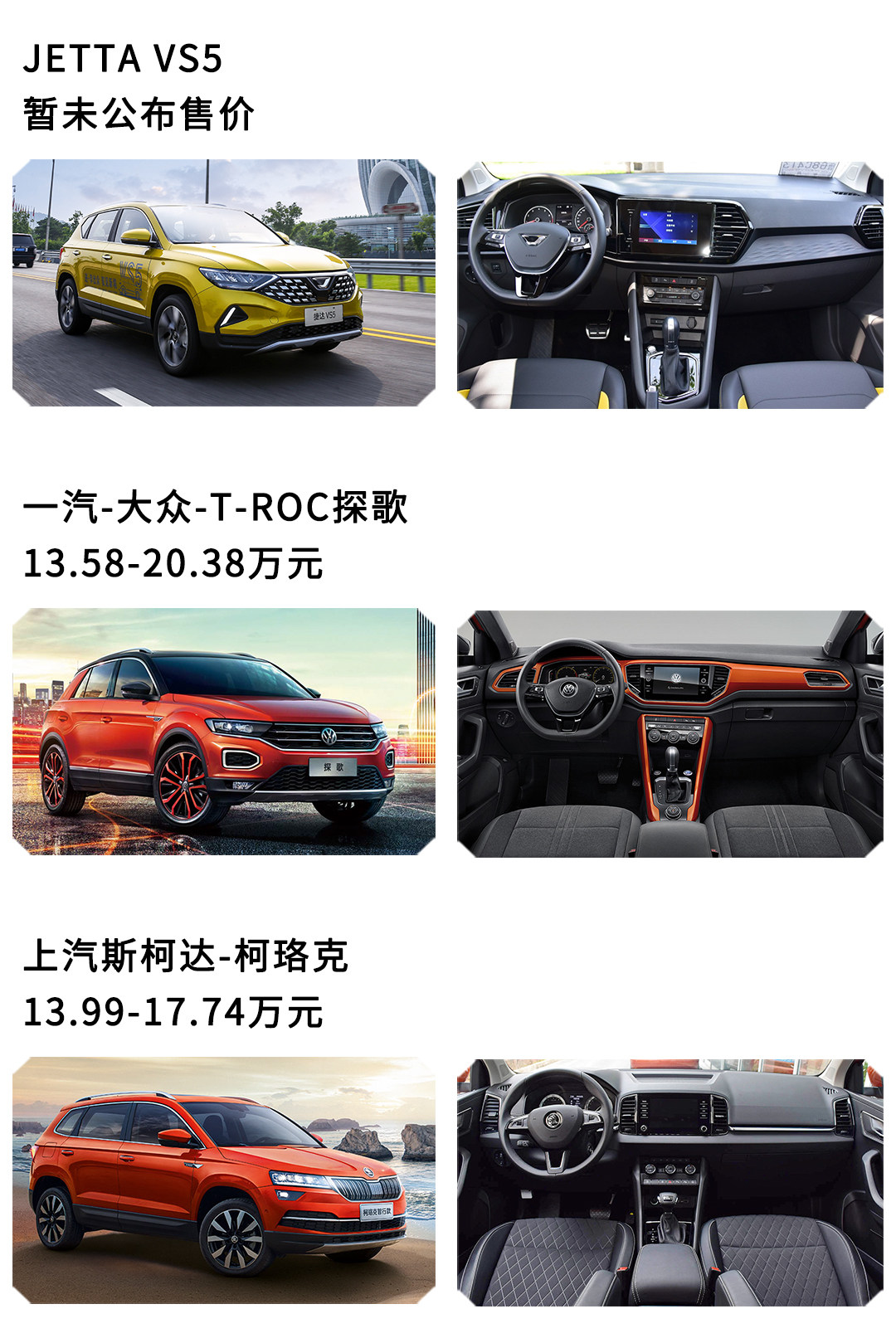 虽然从整体产品力来看,探歌会优于柯珞克优于JETTA VS5。但底子优秀、品质有保障,这是让人容易信任JETTA VS5的主要原因,而时尚设计、低廉售价则是吸引年轻消费人群的必要因素。在与最具血缘关系的大众探歌、斯柯达柯珞克的对比下,即将上市的JETTA VS5就像是“廉价版探歌”,比斯柯达要来得“更大众”,售价则99%可能成为三者间最低的,这样的JETTA未来怎么可能不成为销量屠夫?!