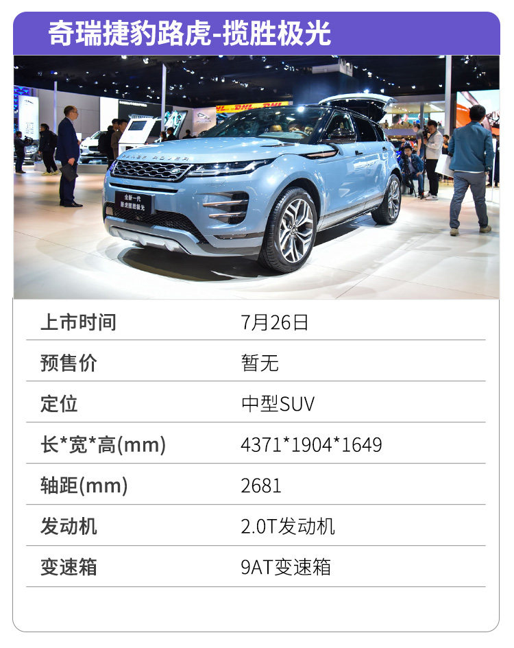 第一代揽胜极光上市已有8年之久,新一代车型也在2019上海车展上完成国内首发,并将于7月正式上市。